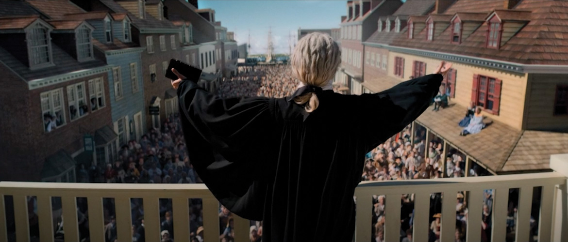 The film flashes back to Franklin’s revisiting Whitefield’s journals, beginning with his early struggles with a lazy eye and harsh treatment from family and peers. However, Whitefield was able to receive theater training leading to his powerful style as a “trumpet from heaven” and education at Oxford in a servile position at which time he was taunted by other young men but also met and joined the Holy Club made up a strong, serving  Christian leaders such as John and Charles Wesley.
